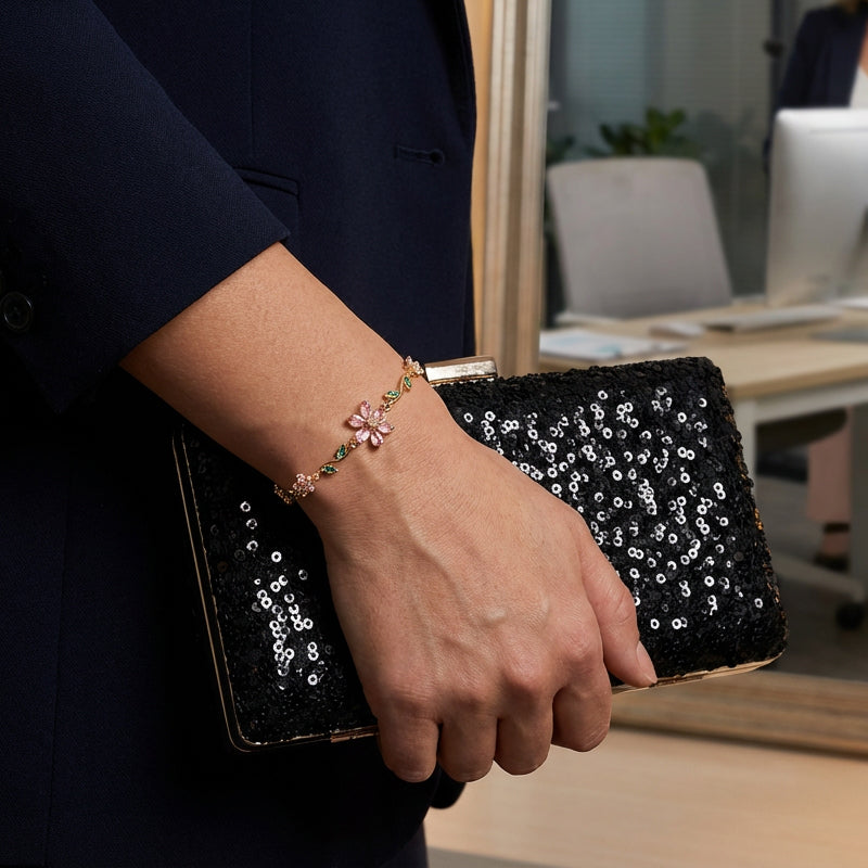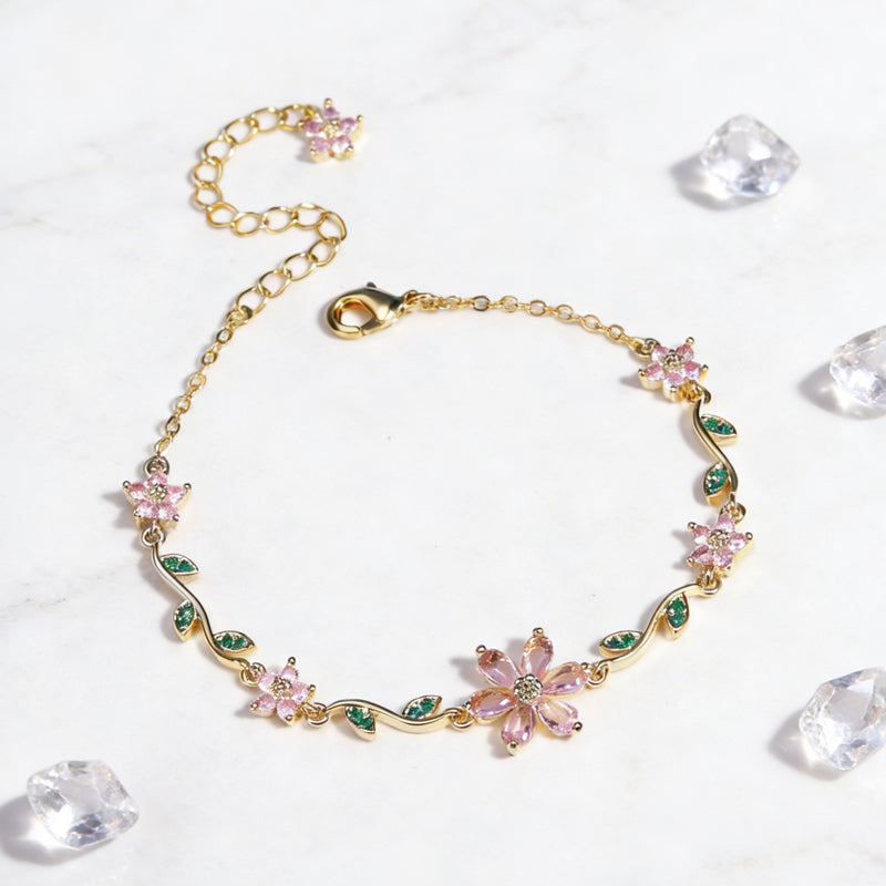 Lieferumfang: 1 * Damen-Armband mit Kirschblüten-Strasssteinen