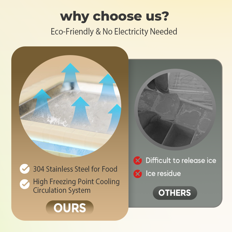 UMWELTFREUNDLICHE GEFRIERFLÜSSIGKEIT, KEIN ELEKTROSTROM ERFORDERLICH: Verwendet eine umweltfreundliche Gefrierflüssigkeit, die den Stromverbrauch überflüssig macht. Einfach einfrieren, gießen und rollen - sicher, energiesparend und perfekt für selbstgemachte Leckereien zu jeder Zeit.