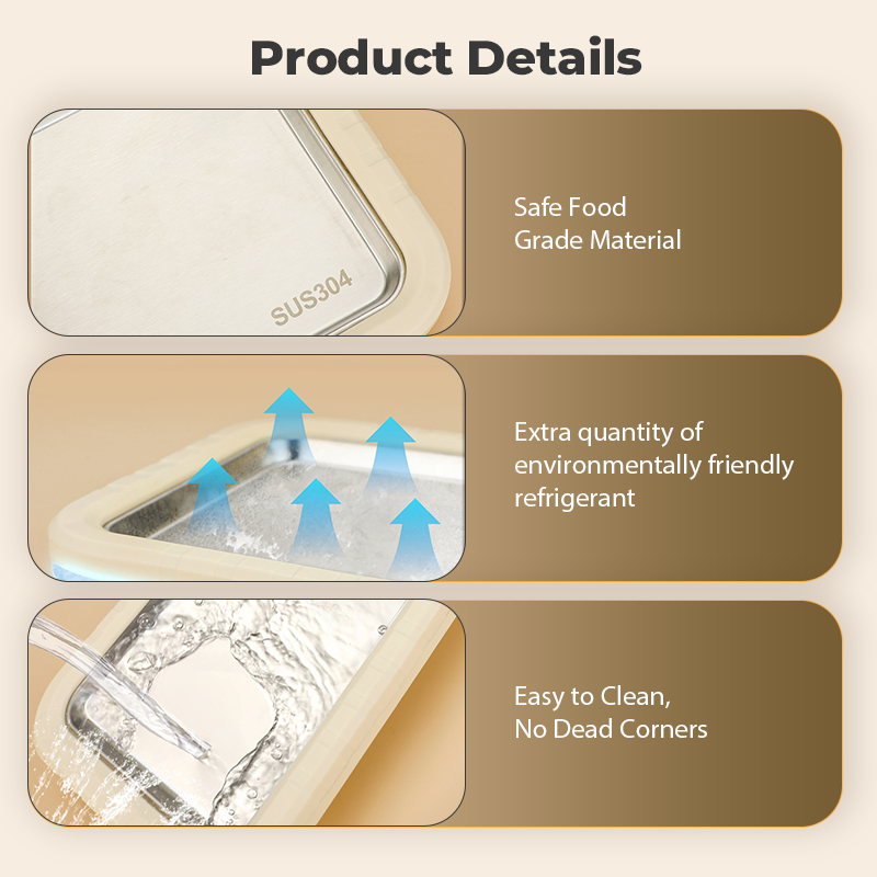 SICHERES LEBENSMITTELMATERIAL: Hergestellt aus hochwertigen, lebensmittelechten Materialien, die sicher, langlebig und geruchsneutral sind. Sie können beruhigt sein, während Sie köstliches gerolltes Eis, gefrorenen Joghurt oder Sorbets für die ganze Familie herstellen.