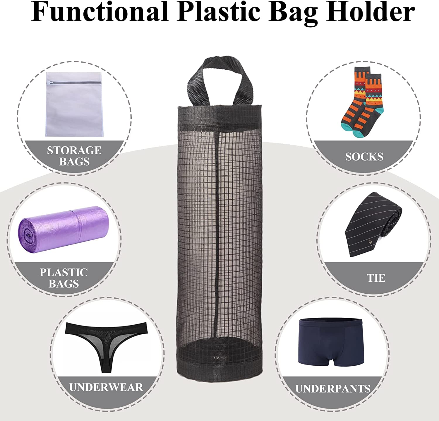 - VIELSEITIG EINSETZBAR. Unser Müllbeutelhalter eignet sich hervorragend zum Recycling und zur Organisation und ist ideal für die Aufbewahrung von Plastiktüten in der Küche, z. B. Plastiktüten für Reisen, Einkaufstüten sowie Toiletten- und Küchenpapierrollen zu Hause. Er kann auch zur Aufbewahrung von Gemüse wie Tomaten oder Kartoffeln beim Einkaufen verwendet werden.