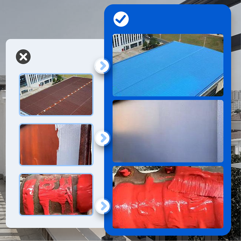 EASY APPLICATION, NO COMPLEX PREP - Saves time and effortāno need for extensive rust removal or priming; simply apply directly over prepared surfaces. Versatile use on color steel roofs, shipping containers, railings, metal structures, and other construction facilities.Ā