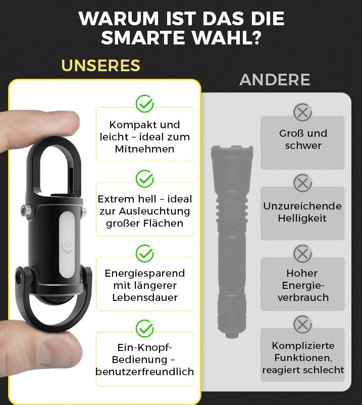 SUPERHELLE BELEUCHTUNG: Mit einer starken Lichtleistung von 1200 Lumen bietet diese Mini-Taschenlampe eine außergewöhnliche Helligkeit und ist damit ideal für verschiedene Situationen, von nächtlichen Aktivitäten bis hin zu Notfällen.