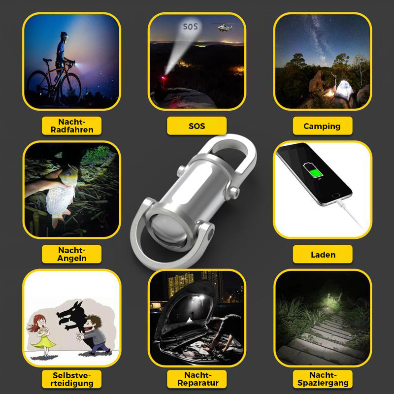 Beleuchten Sie Ihre Welt mit unserer 1200LM Super Bright Mini Keychain Flashlight! Diese vielseitige Taschenlampe ist ultrahell, wasserdicht und mit mehreren Funktionen ausgestattet, was sie zu einem unverzichtbaren Werkzeug für den täglichen Gebrauch, Outdoor-Abenteuer und Notfälle macht. Mit ihrem kompakten Design können Sie sie einfach an Ihrem Schlüsselbund tragen, wo immer Sie hingehen.