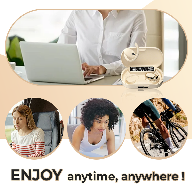 INNOVATIVE OHRANPASSUNGSTECHNOLOGIE: Die Ohrhörer verfügen über ein einzigartiges, ohrhängendes Design, das einen sicheren und bequemen Sitz garantiert – selbst bei intensiven Aktivitäten. Gleichzeitig bleiben Ihre Ohren frei, was das Bewusstsein für die Umgebung verbessert. Perfekt für Sport oder den Außeneinsatz – stabil und praktisch zugleich.