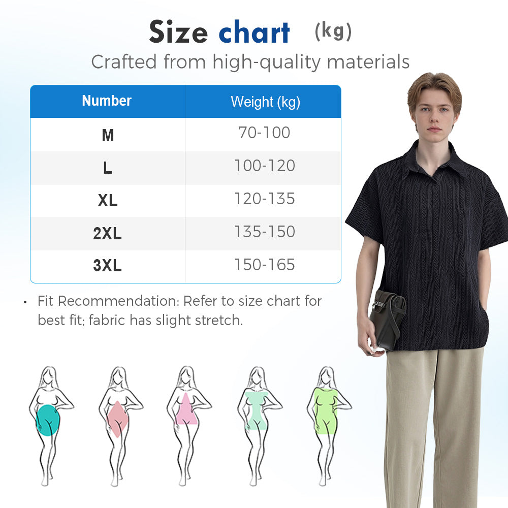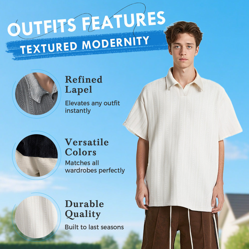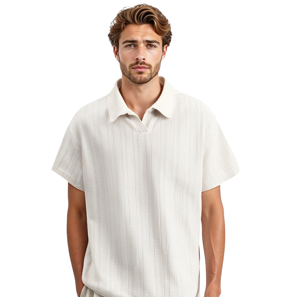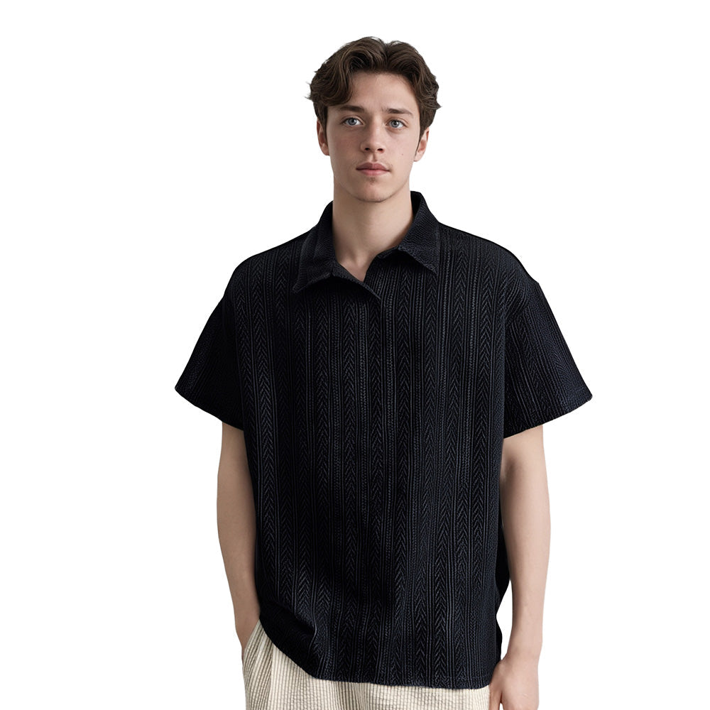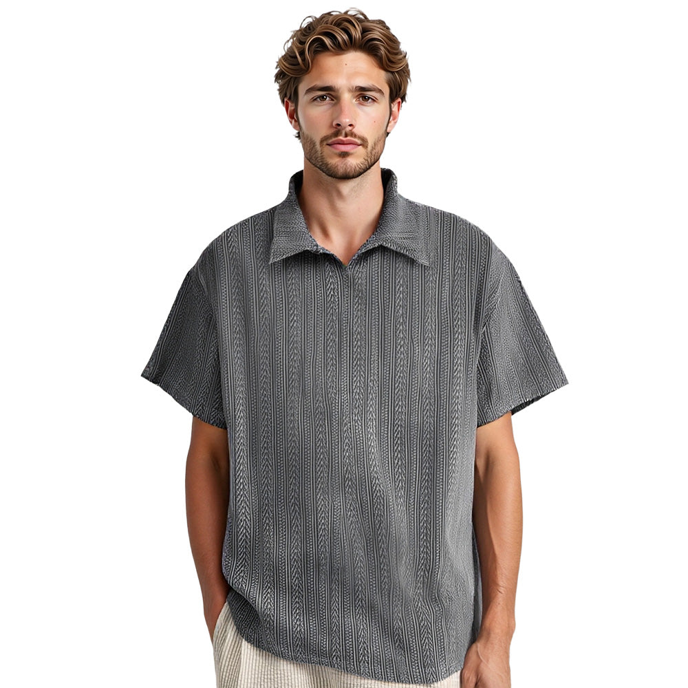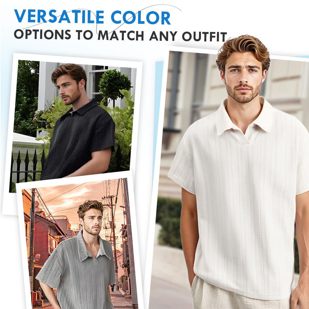 1 * Herren Casual Strukturiertes Revers Kurzarm