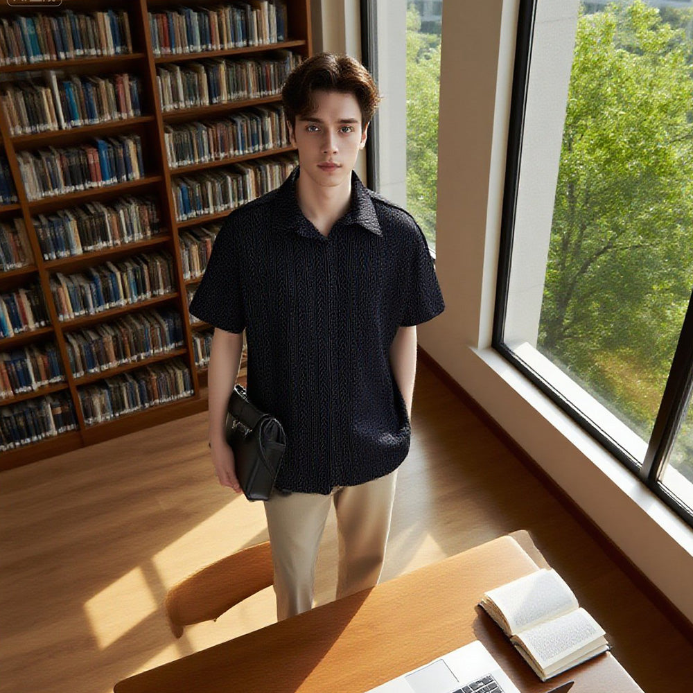 Lässiges Herrenhemd mit strukturiertem Revers und kurzen Ärmeln
