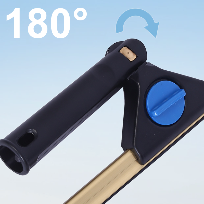 180° SCHWENKBARE EINSTELLUNG: Der patentierte Drehkopf lässt sich leichtgängig drehen, um enge Stellen hinter Einbauten und Fensterrahmen zu reinigen. Im Gegensatz zu starren Wischern sorgt dieses 180°-Gelenk dafür, dass die Klinge auch in ungünstigen Winkeln vollflächig aufliegt, wodurch Schlieren und Flecken in schwer zugänglichen Bereichen vermieden werden.