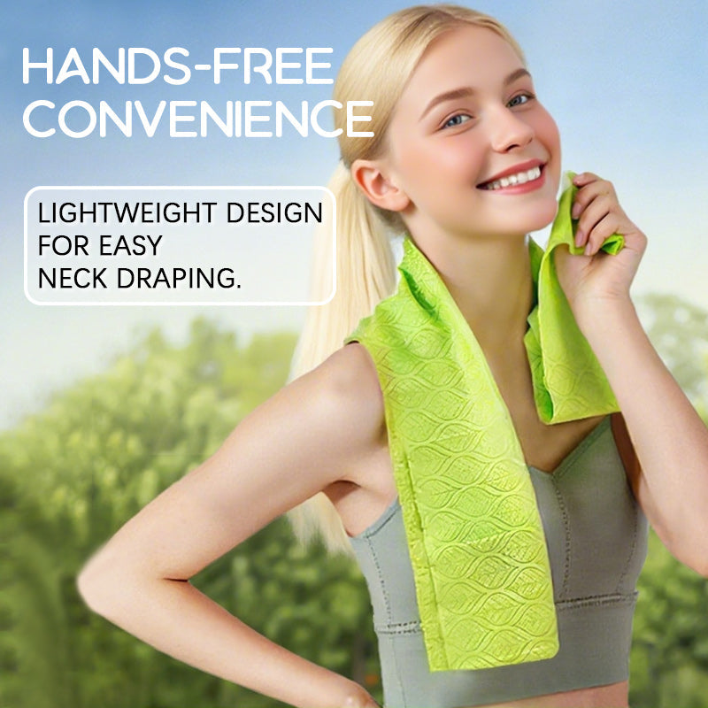 Freihändiger Komfort – Dank seines leichten, aufhängbaren Designs lässt sich dieses Handtuch einfach um den Hals hängen und sorgt für kontinuierliche Kühlung ohne Verrutschen. Kompakt und dennoch effektiv – Ihre Lösung zur Bekämpfung von Hitzeermüdung, wann und wo immer Sie Linderung benötigen.