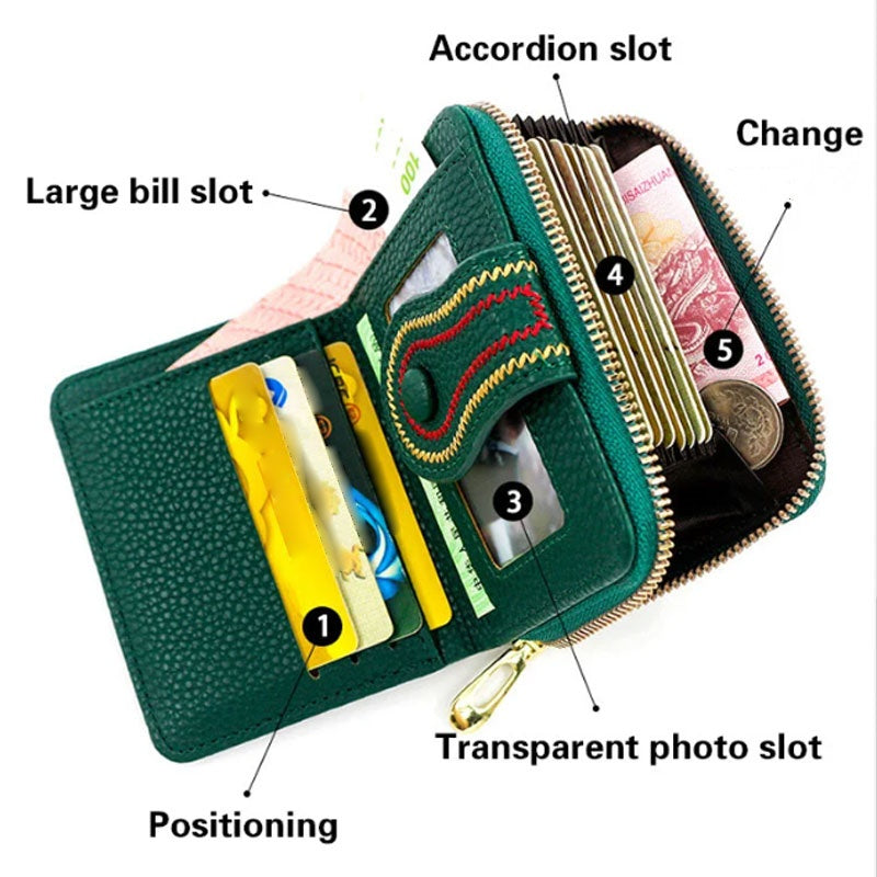 Lieferumfang: 1* Damen-Geldbörse mit kurzem Reißverschluss und mehreren Kartenfächern