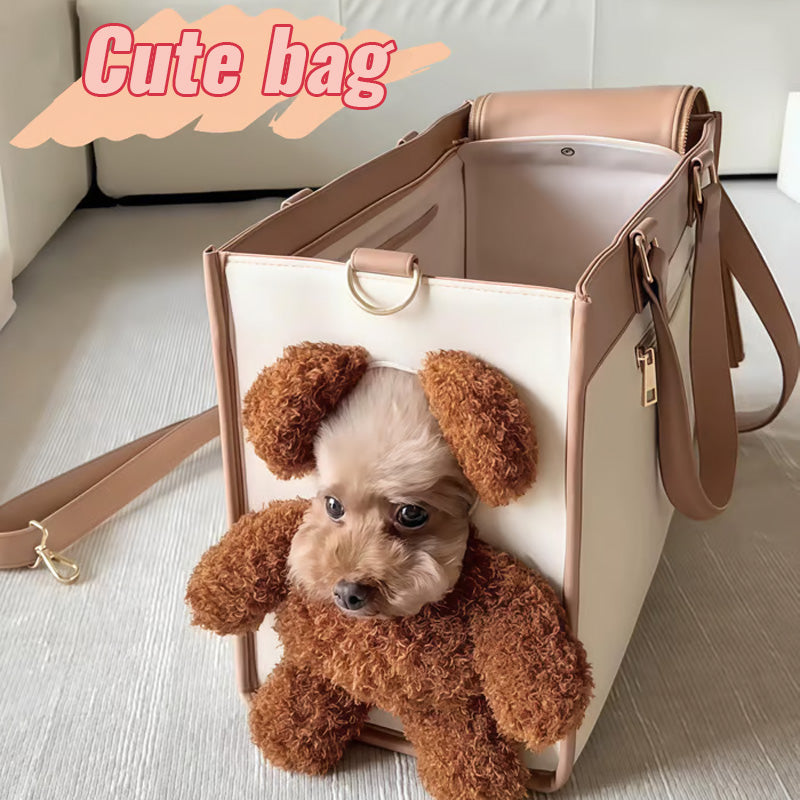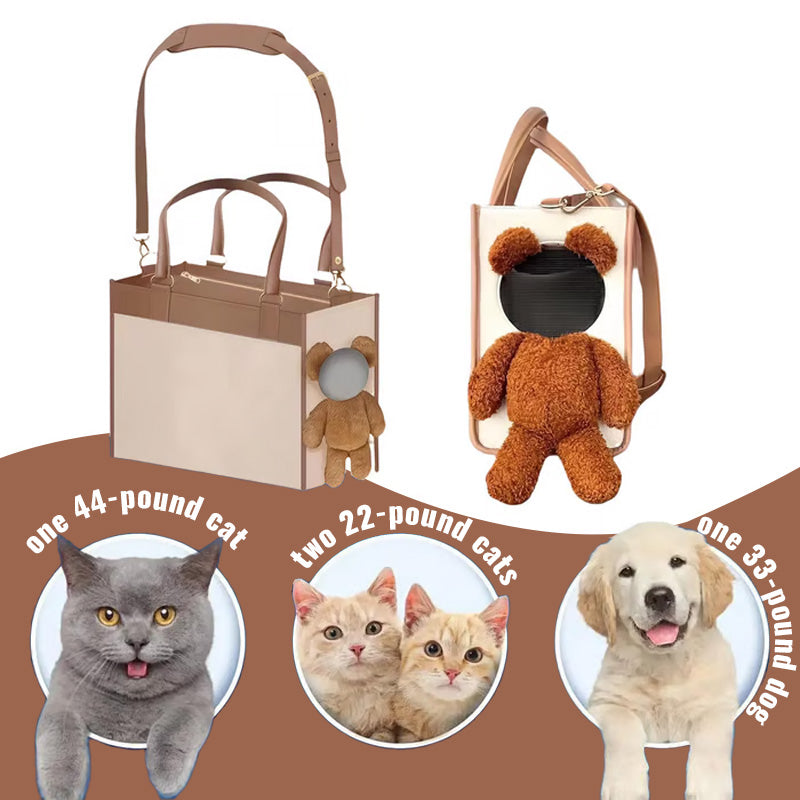 GELBES DESIGN MIT WEICHEM TEDDLE-DETAIL: Diese Tasche für Haustiere verfügt über eine niedliche Verzierung in Form eines weichen Teddybären sowie einen seitlichen Ausgang, aus dem Ihr Haustier bequem herausschauen kann - eine Kombination aus Stil und Komfort.