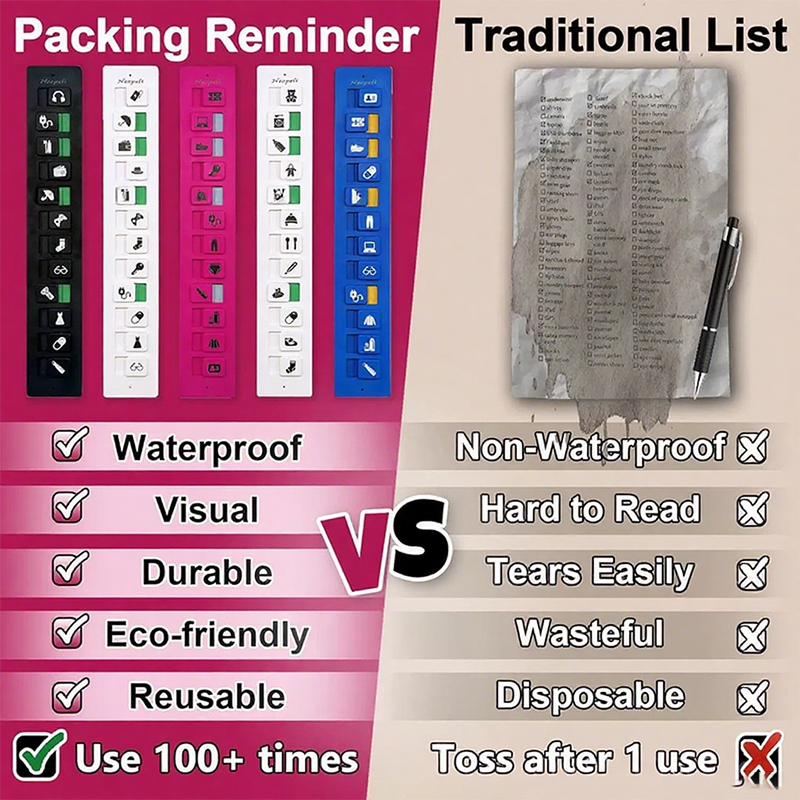 ALL-IN-ONE PACKING REMINDER SYSTEM: Verwalten Sie Ihre Reiseutensilien mit Hilfe der intuitiven Schieberegler-Checkliste und 24 abnehmbaren Anhängern - markieren Sie per Schieberegler die eingepackten Gegenstände und vermeiden Sie, etwas Wichtiges zu vergessen.