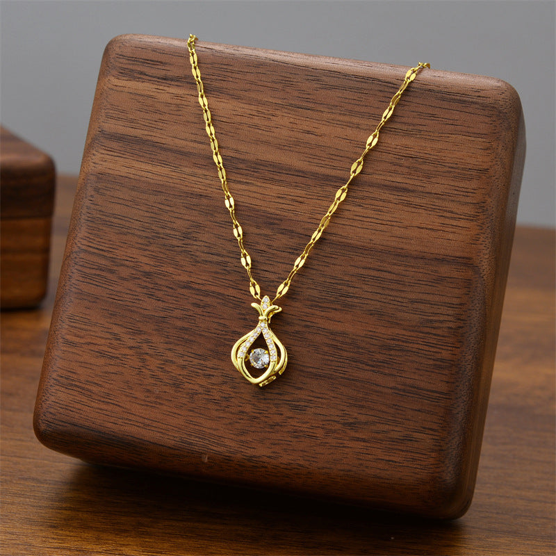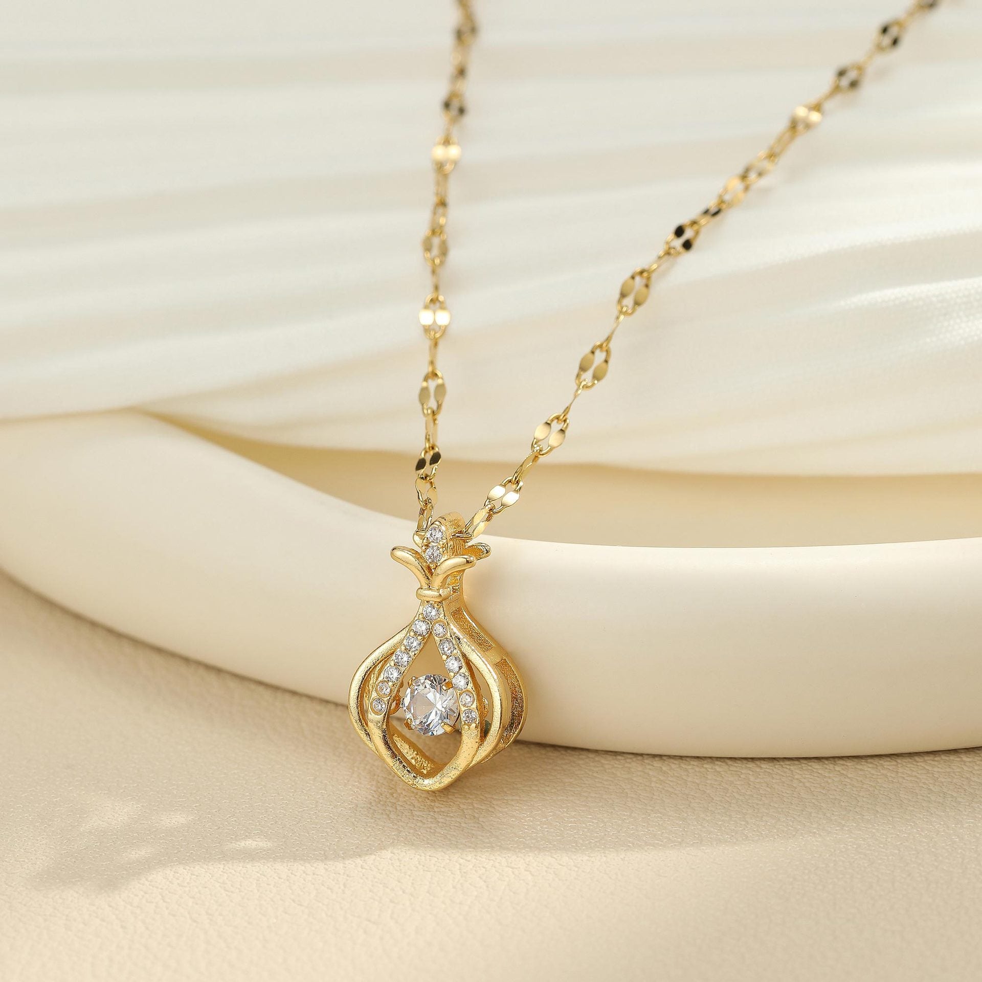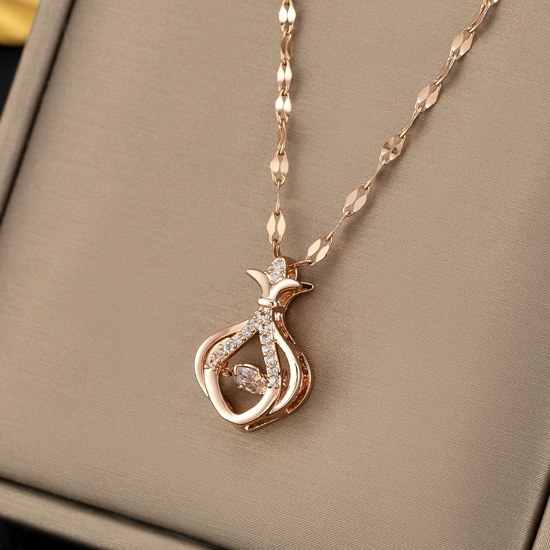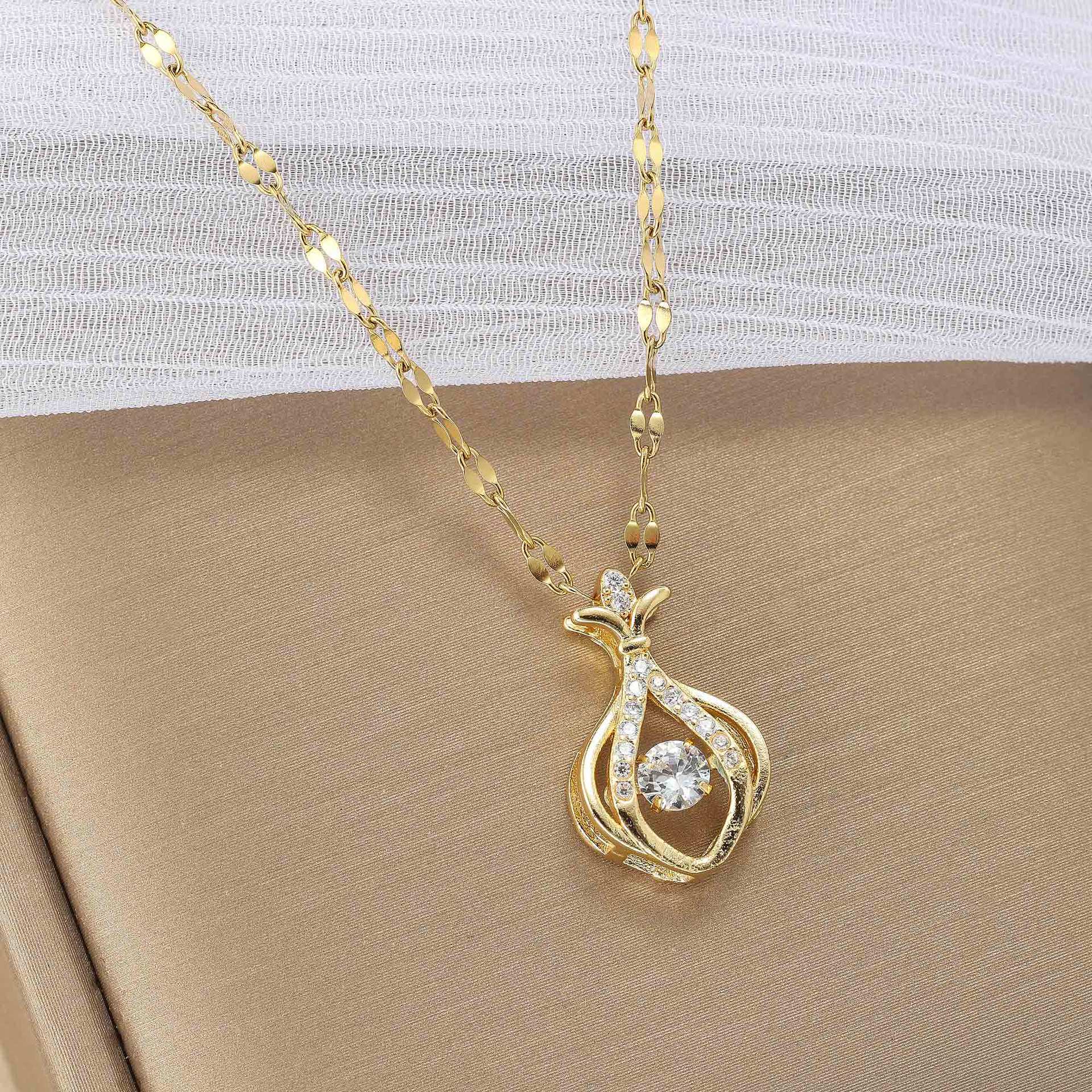 Strass-Anhänger mit goldfarbener Kupfer- und Titan-Stahlkette
