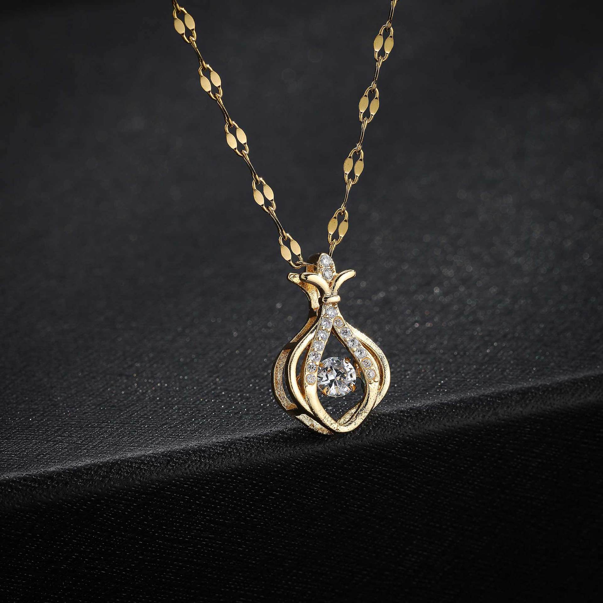 Lieferumfang:1*Strassstein-Anhänger mit goldfarbener Kupfer- und Titan-Stahlkette