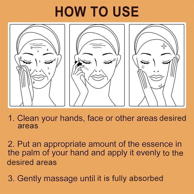 Geben Sie eine angemessene Menge der Essenz in Ihre HandflĂ€che und verteilen Sie sie gleichmĂ€Ăig.