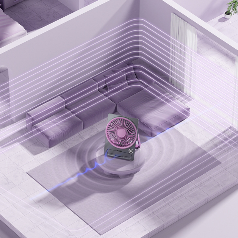 VIELSEITIGER EINSATZ MIT AUFHÄNGE- UND STÄNDEMÖGLICHKEITEN: Der Ventilator kann aufgehängt oder auf eine flache Oberfläche gestellt werden, um den Einsatz zu erleichtern. Die 180°-Weitwinkel-Windfunktion sorgt dafür, dass die kühle Luft alle Teile des Raums erreicht und keine Stelle unberührt lässt. Egal, ob Sie an Ihrem Schreibtisch arbeiten oder ihn in einem Zelt aufhängen, der Ventilator sorgt für eine kontinuierliche und effiziente Kühlung aus allen Winkeln.