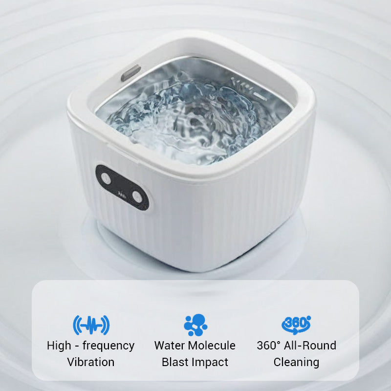 FORTSCHRITTLICHE ULTRASCHALLTECHNOLOGIE : Verwendet hochfrequente Ultraschallvibrationen mit 45 kHz, um Millionen von Bläschen in Nanogröße zu erzeugen und so eine gründliche Reinigung und wirksame Entfernung von Flecken, Ölen und Verfärbungen von Zahnprothesen zu gewährleisten..