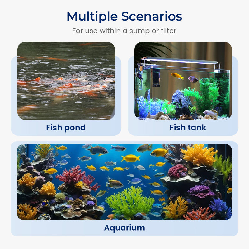 KRISTALLKLARES WASSER – Entfernt effektiv grünes Wasser und Trübungen, die durch schwebende Mikroorganismen verursacht werden. Dieser Prozess stellt die ursprüngliche Klarheit Ihres Aquarienwassers wieder her und unterstreicht die Schönheit Ihrer Wasserwelt.