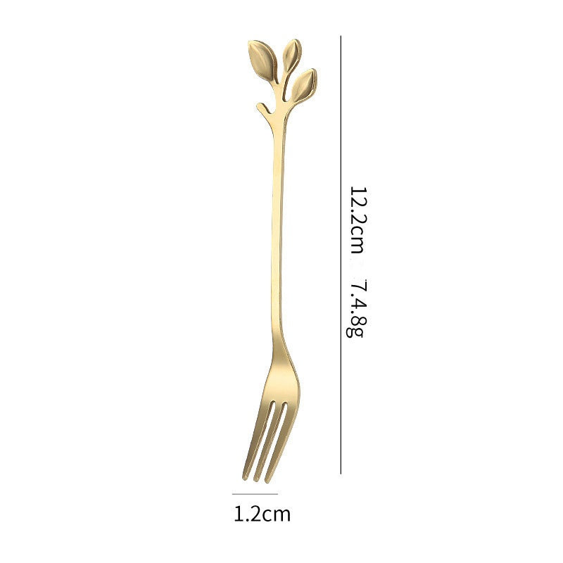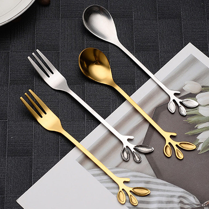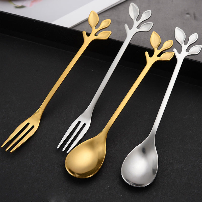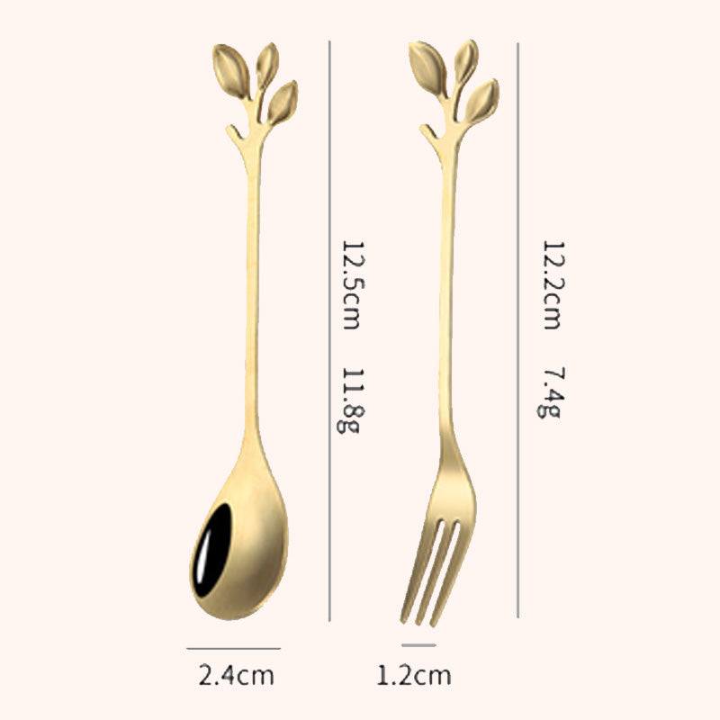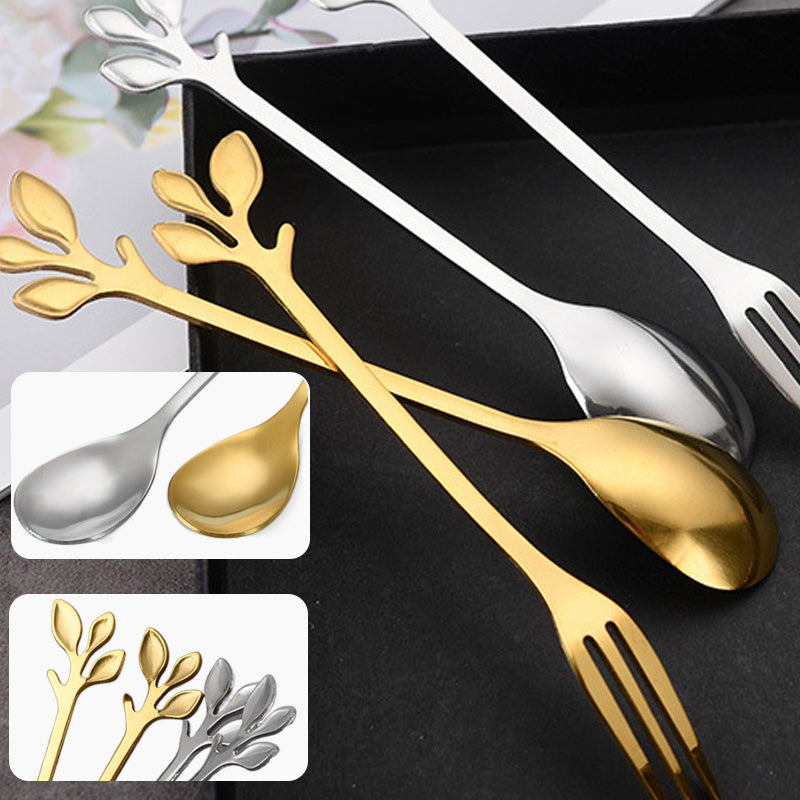 Vintage'owe Sztućce ze Stali Nierdzewnej – Łyżeczka i Widelczyk w Kształcie Liścia