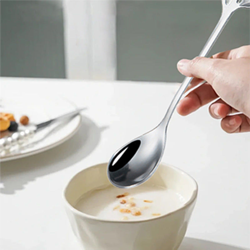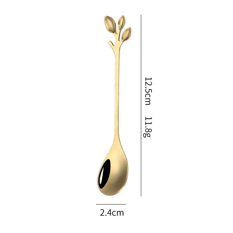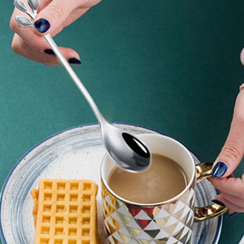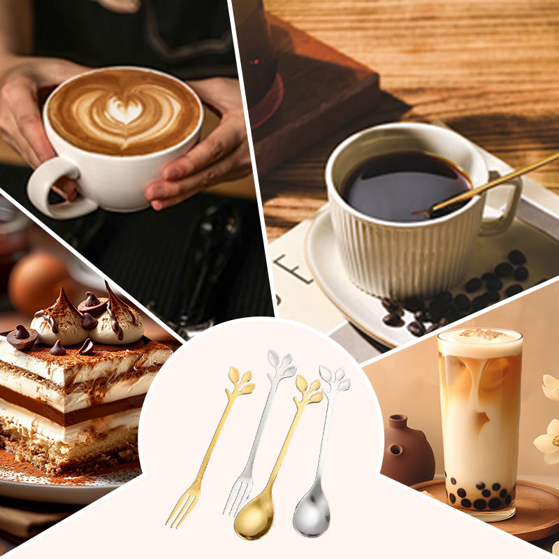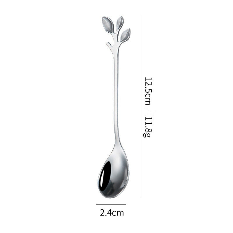 Vintage'owe Sztućce ze Stali Nierdzewnej – Łyżeczka i Widelczyk w Kształcie Liścia