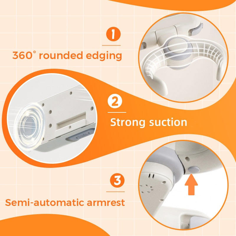 ERGONOMIC AND ADJUSTABLE SUPPORT: Simulated hug-style ergonomic design with adjustable width from 26–35cm. One-hand tightening locks the armrest in place, preventing your baby from pushing it open. Suitable for babies aged 6 months to 3 years.