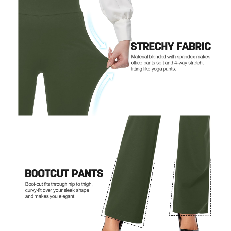 VORTEILHAFTE BOOTCUT-PASSFORM – Der klassische Bootcut-Schnitt sitzt an Hüfte und Oberschenkel eng anliegend und läuft zum Saum hin leicht aus, wodurch eine ausgewogene, elegante Silhouette entsteht, die Ihre Beine optisch verlängert und Sie größer und schlanker wirken lässt.
